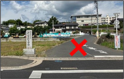地元町内会との取り決めにより、産業道路方面からの車両通行は禁止とさせていただいて